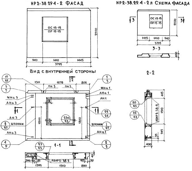 НР2-38.29.4-2 Наружная стеновая панель рядовая по Серии 1.132-1.