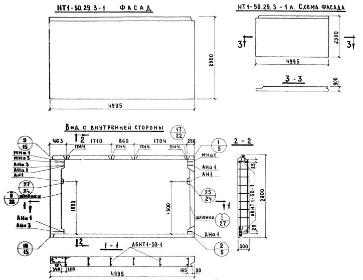 НТ1-50.29.3-1 Наружная стеновая панель торцевая по Серии 1.132-1.