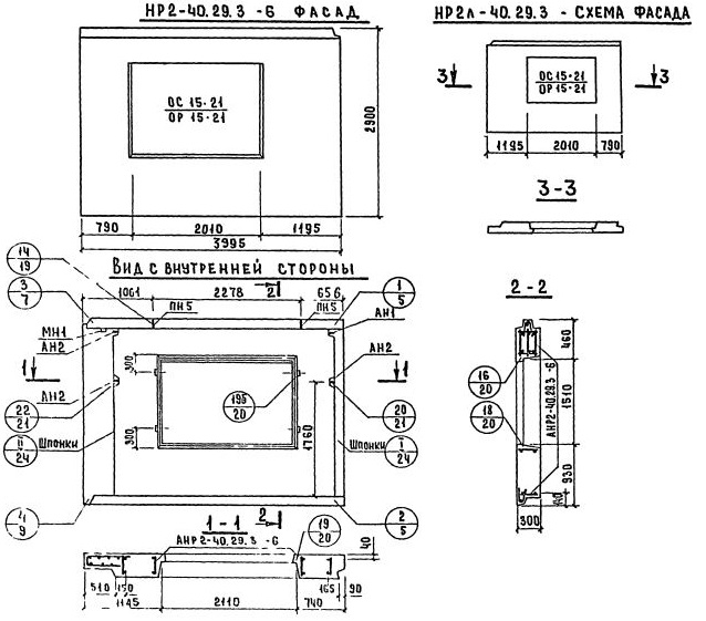НР2л-40.29.3-6    Наружная стеновая панель рядовая по Серии 1.132-2.